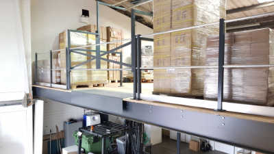 Mezzanine Floor with up and over gate for safety of pallet movement